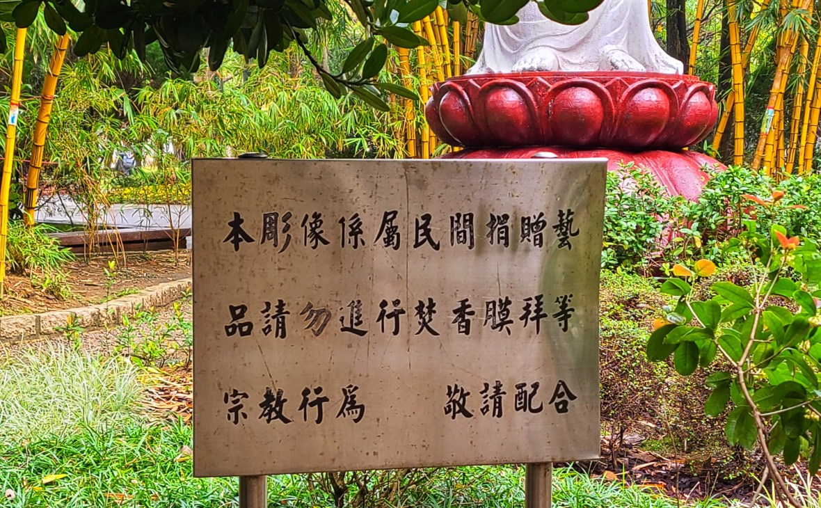 Today you can find a sign nearby the statue. Its content roughly translates to “This statue is a public art. Please refrain from performing religious acts such as burning incense and worshiping.”