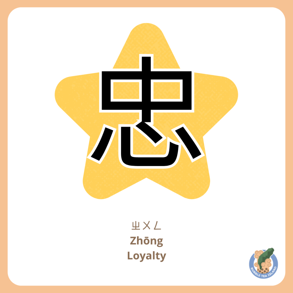 | 忠誠 | ㄓㄨㄥ ㄔㄥˊ | zhōngchéng | Loyalty |