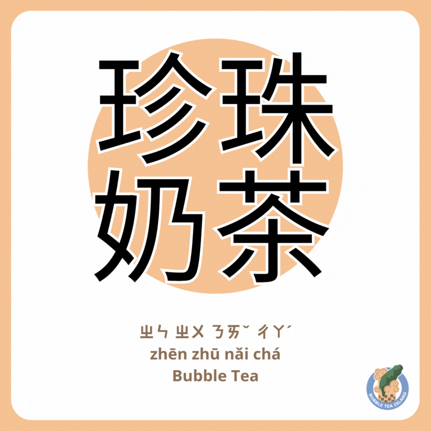 | 珍珠奶茶 | ㄓㄣ ㄓㄨ ㄋㄞˇ ㄔㄚˊ | zhēnzhūnǎichá | Bubble tea |