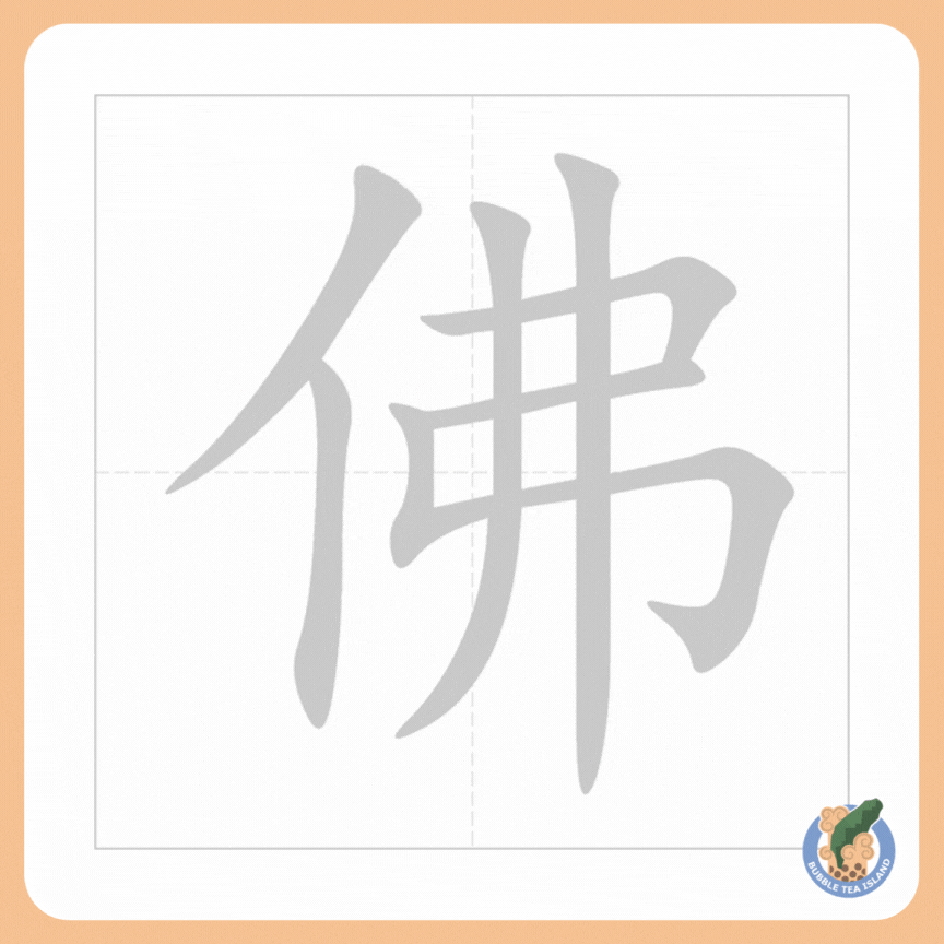 佛 is the character for “buddha”. It is made out of 7 strokes.
