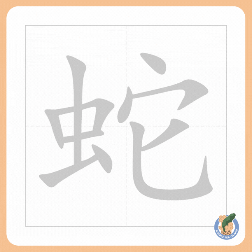 蛇 is the character for “snake”. It is made out of 10 strokes.