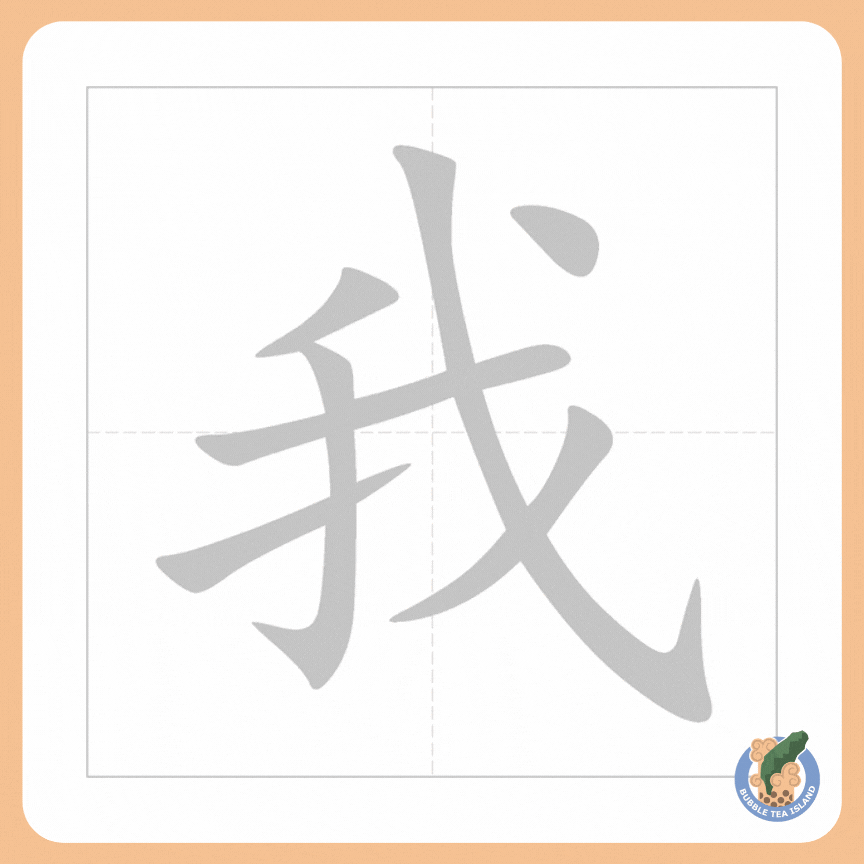 我 is the character for “I; me”. It is made out of 7 strokes.