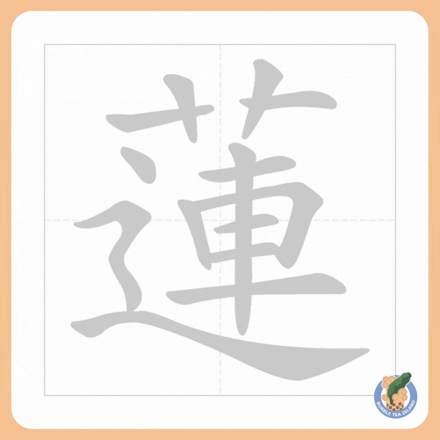 The Chinese character 蓮 originates as a phono-semantic compound. It combines the semantic component 艹, symbolizing plants or vegetation, with the phonetic component 連 (lián), which provides a clue to its pronunciation.