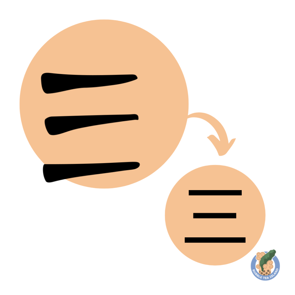 The Chinese character for “three” (三) is an ideogram representing the concept of three through three parallel horizontal strokes. This straightforward design visually conveys the idea of triplicity by building upon the character for “one” (一) with a single stroke, and “two” (二) with two strokes.