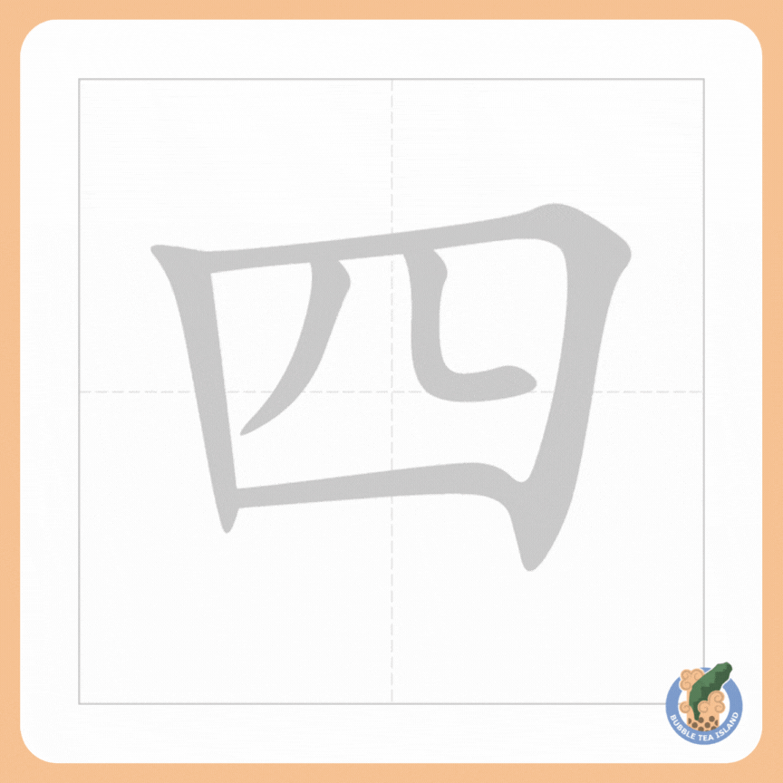 四 is the character for “four”. It is made out of 5 strokes.