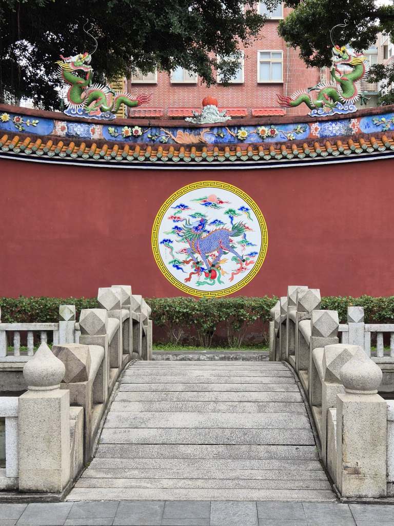 This reconstruction was heavily inspired by the Confucius Temple in Qufu, the philosopherโs hometown in China. However, what makes the Taipei version unique in Taiwan is its use of southern Fujian-style ceramic ornaments, especially visible on the rooftops.