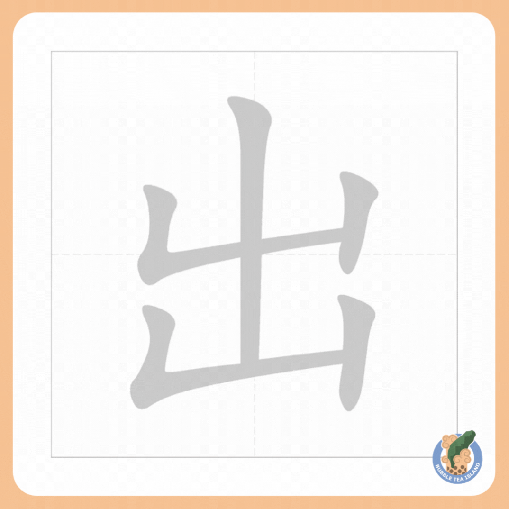 出 is the character for “to go out”. It is made out of 5 strokes.